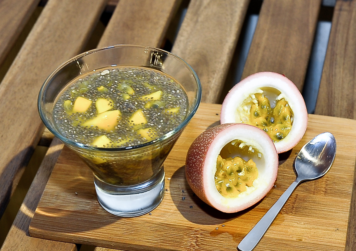 Mango Passion Fruit Coconut Chia Seed Pudding