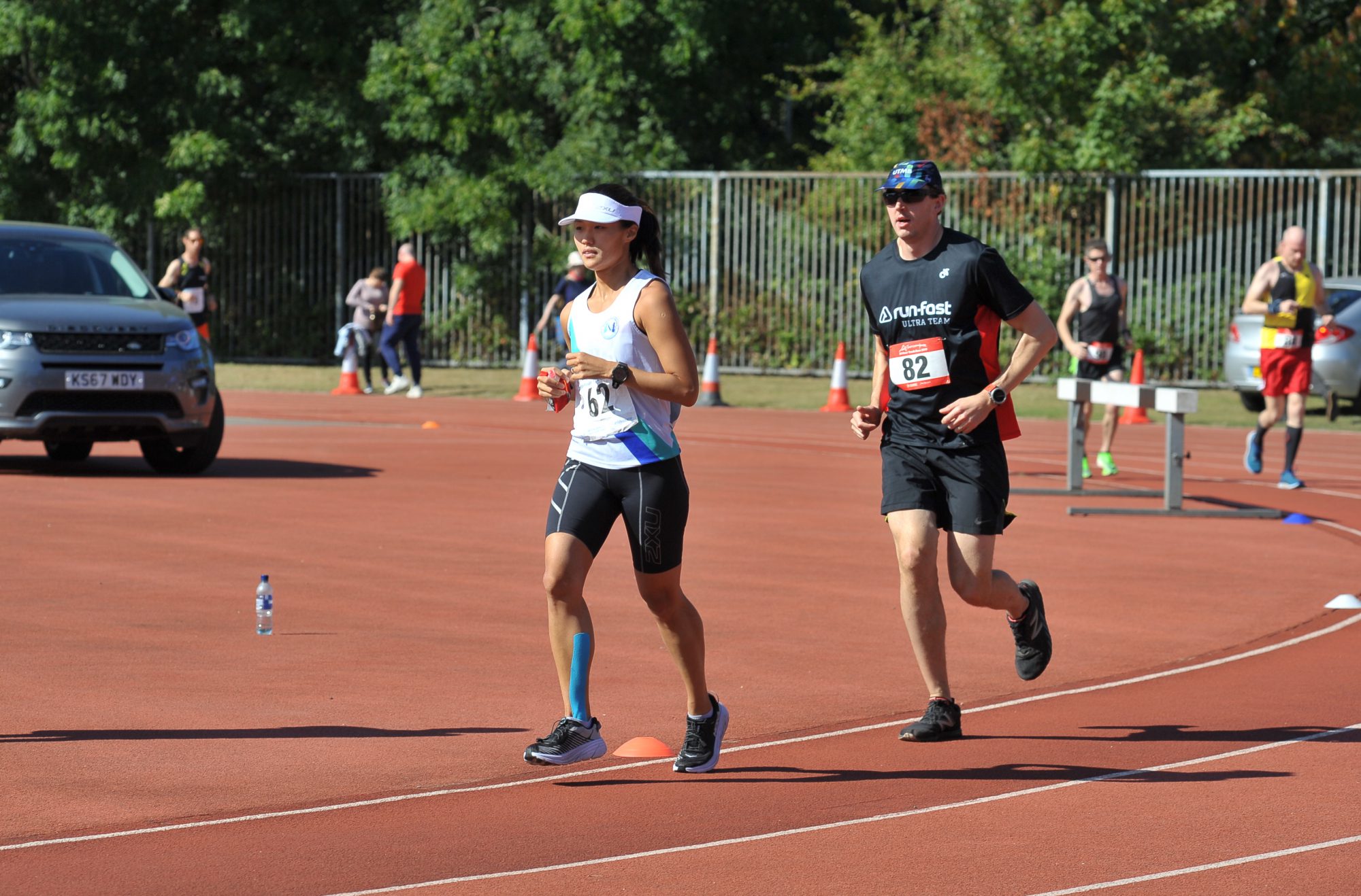 Alison ran most of the first 4 hours with her team mate, George Lloyd, who is a seasoned ultra runner. “We kept the pace chatty, and it was good to have company because we were running around a 400m track and needed some mental stimulation,” recalled the ultra-runner.