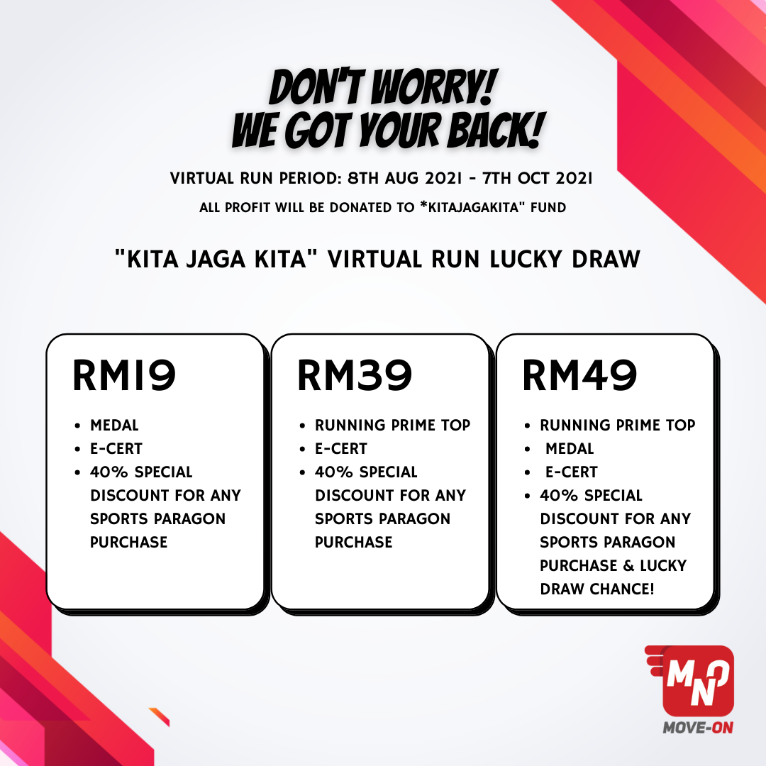 If you don’t know where to start, why not join MOVE ON’s “KitaJagaKita Fundraising Virtual Run Campaign”. Yes, you don’t have to be rich to make a difference to society, and what’s better than joining a virtual run that can benefit you physically and mentally while helping people who are in need.