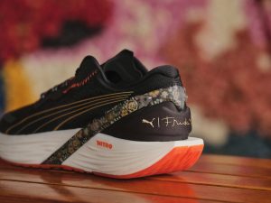 woman’s foot is unique, yet the running market has ignored this fact and instead amended men’s footwear to “fit” women. PUMA is taking a stand with the first running shoe built on a woman’s last. Aptly timed to our Frida Kahlo collaboration, meet the groundbreaking Run XX NITRO Frida Kahlo, featuring a female-specific narrower heel, sculpted arch, and lower instep. But a tailored fit wasn’t enough: We incorporated a NITRO foam midsole—the perfect balance of durable and lightweight cushioning—and a bold floral printed RUNGUIDE support rail to promote proper alignment and increased stability for longer distances. Watch her go!