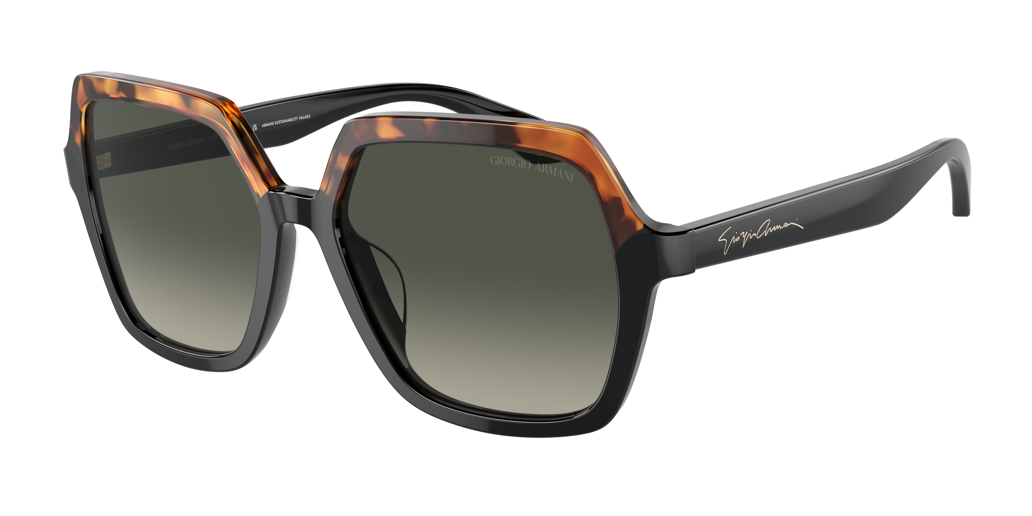 AR8193U Featuring a sophisticated square frame, these women’s sunglasses are made from bio-acetate, a material partly sourced from renewable sources and made with 67% bio-based carbon. The bold silhouette is paired with sinuous temples featuring a laser etched Giorgio Armani signature and iconic diamond on the tips. This model is available in Havana yellow/black with grey gradient crystal lenses and in Havana orange/red with brown gradient crystal lenses.