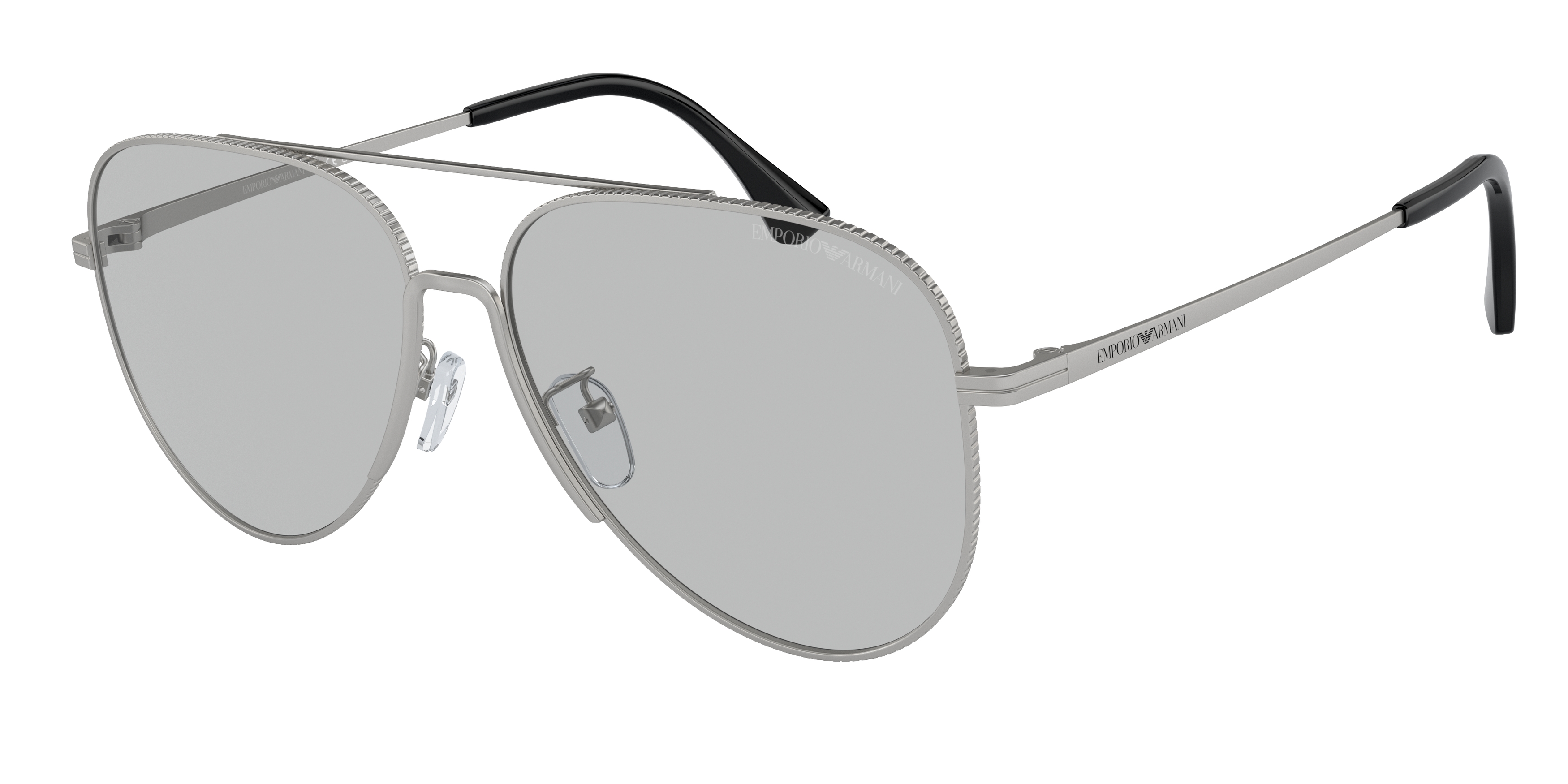 EA2149D These men’s sunglasses combine an iconic silhouette and a refined metal construction. The aviator frame features a double bridge, slender metal temples and nylon fibre tips to offer maximum comfort. Available in two matte colours: black with grey polarized lenses and silver with light grey lenses.